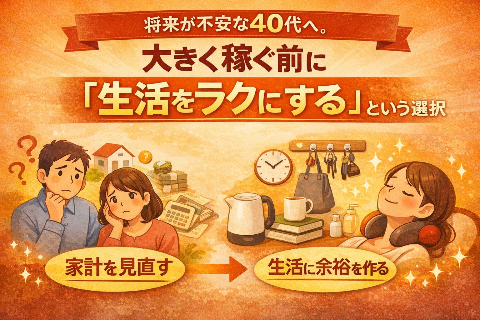 将来が不安な40代へ。大きく稼ぐ前に「生活をラクにする」という選択
